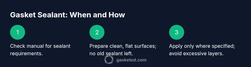 - Apply sealant only where approved by the gasket kit or manual.
