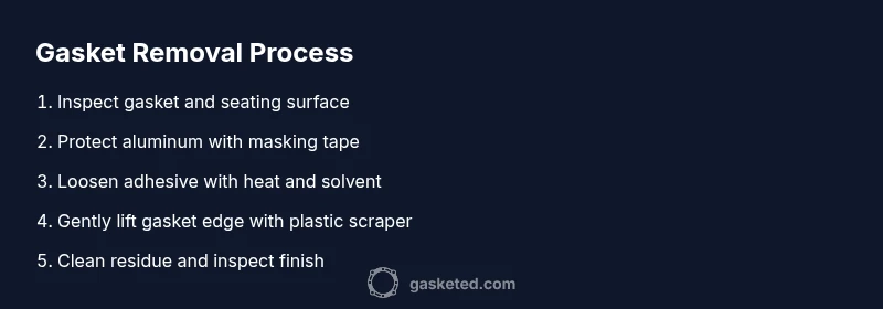 The aluminum surface beneath a gasket deserves special care. According to Gasketed, aluminum is softer and more prone to scratching than many metals, so aggressive scrapers or metal tools can mar the finish or damage the sealing surface. Begin with a visual assessment: check for cracking, pitting, or corrosion around the gasket seat. If the area looks compromised, plan for a gasket replacement rather than a removal-and-reuse approach. In most DIY scenarios, you’ll encounter a mix of mechanical debonding and adhesive residues. Being methodical protects the aluminum and keeps the joint clean for a reliable reinstallation. The takeaway is to combine gentle lifting with compatible solvents and controlled heat, using only non-marring tools. This approach minimizes risk and yields a surface ready for a fresh gasket.