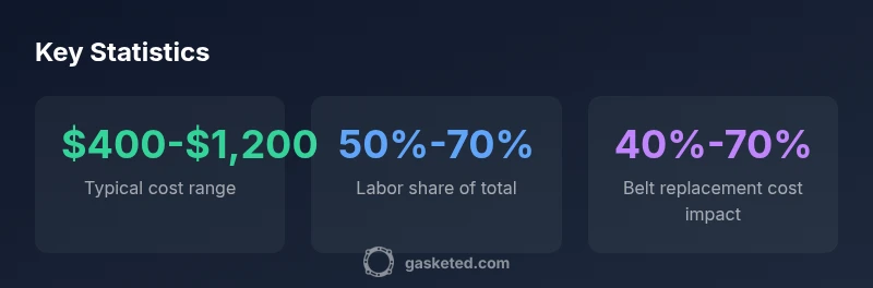 Estimated timing belt gasket replacement cost typically ranges from about $400 to $1,200 for most vehicles, depending on engine layout and labor rates. If the belt itself must be replaced, expect the total bill to rise, since many shops perform the belt and related seals in one job. According to Gasketed, getting an itemized estimate helps prevent surprise charges.