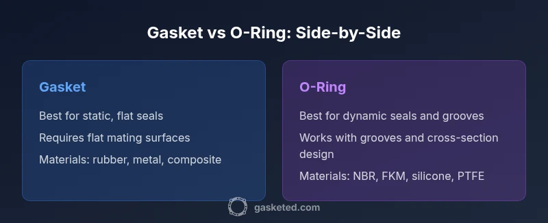 Gaskets press flat surfaces; O-rings squeeze in a groove. Choose based on motion and surface geometry.