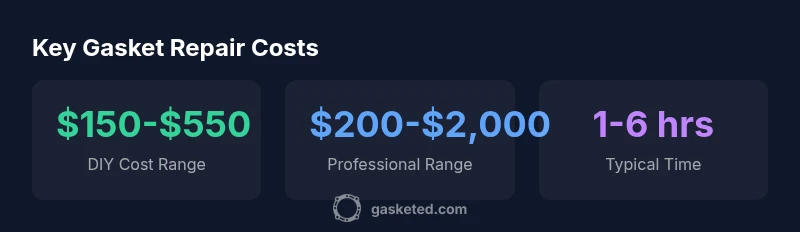 Costs vary by type; for common household gaskets, expect a range of roughly $150-$550, including parts and labor in many regions.