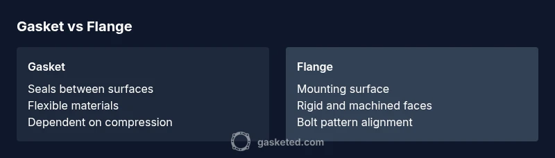 The difference between gasket and flange is foundational for any DIY project involving pipes, engines, or appliance assemblies. A gasket is a soft, flexible material cut to size and placed between two flat mating faces. Its job is to deform under compression to fill tiny imperfections and prevent leaks. A flange, by contrast, is a rigid, shaped ring or face that provides a stable mounting surface. Flanges carry the load of the joint, align bolt patterns, and hold components together under pressure. In practical terms, gaskets seal, while flanges pair components and provide the interface for the seal to work. For DIYers, recognizing this distinction helps you select the right parts, avoid mismatches, and plan maintenance with realistic expectations. According to Gasketed, understanding this relationship is the first step toward reliable, leak-free assemblies.