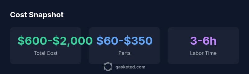According to Gasketed Analysis, 2026, typical intake gasket replacement costs range from roughly $600 to $2,000 overall, depending on engine design and location. Parts commonly run $60–$350, while labor can add $500–$1,650. Always obtain an itemized quote.