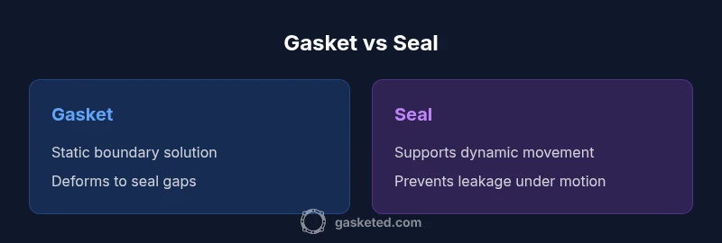 The main difference is function: a gasket fills the gap between fixed surfaces, while a seal prevents leakage at a boundary under static or dynamic conditions. Gaskets compress to seal; seals manage movement and wear.