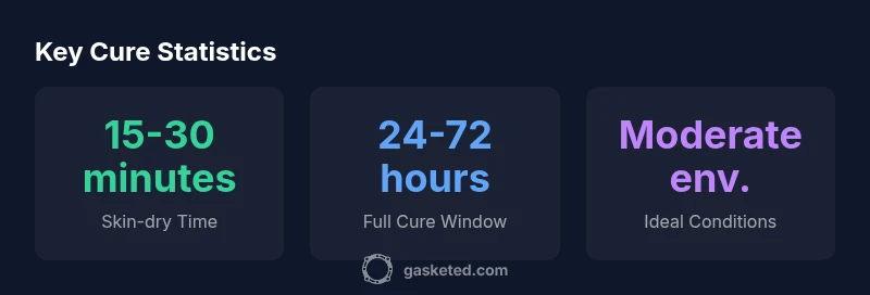 | Polymer-based gasket maker | 20-40 minutes | 24-48 hours | Often faster in warm, humid environments |
