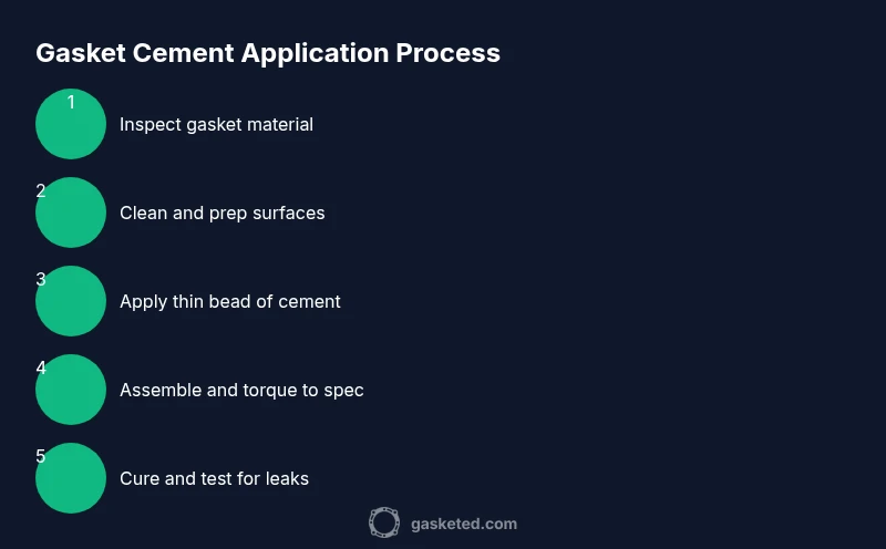Avoid over-application, which can squeeze out and create a mess or interfere with bolt alignment. Don’t mix sealants unless the manufacturer explicitly allows it. Ensure surfaces are fully dry before applying, and never reassemble while the cement is still soft to prevent misalignment. If leaks persist after curing, inspect for gaps at corners, check torque specs, and verify compatibility with the gasket material. Troubleshooting often requires re-cleaning and reapplying with a fresh bead, followed by a longer cure period.