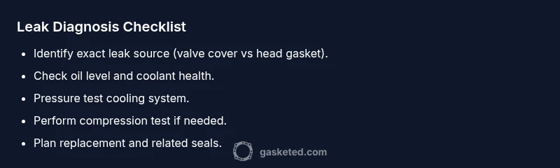 If tests indicate a head gasket problem, plan for a full replacement and associated service like coolant system refresh and seals. If only a valve cover gasket leaks, a reseal may suffice.