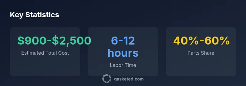 - Additional services: Coolant flush, timing-chain or timing-belt work, head resurfacing, and machine shop fees may add to the bill.