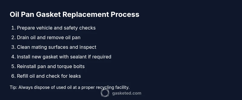 This overview outlines the general sequence without duplicating the detailed steps found later. Start by safely lifting the vehicle and draining the oil. Remove the oil pan bolts, detach the pan, and clean both mating surfaces. Fit the new gasket with or without sealant per gasket instructions, reinstall the pan with proper torque, and refill with fresh oil. Finally, run the engine and check for leaks around the gasket surface after a short drive.